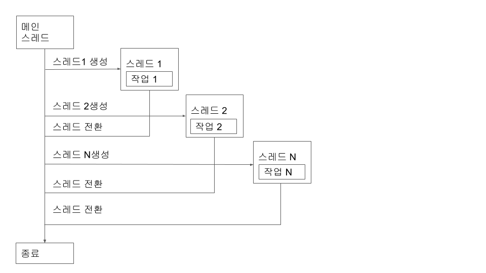 멀티 스레드를 사용하면 스케쥴링 알고리즘에 의해 컨텍스트 스위칭이 일어나면서 특정 스레드가 작업을 실행하다가 다른 스레드로 전환되면서 새로운 작업을 하고 다시 원래 스레드로 돌아와서 일시 중지했던 작업을 이어서 완료합니다. 멀티 스레드를 사용하면 스레드마다 작업을 나눠서 처리할 수 있기 때문에 여러 개의 작업을 효율적으로 처리할 수 있습니다. 또한 스레드는 프로세스보다 가볍고 하나의 프로세스 내에서 여러 개의 스레드를 생성하면 메모리 자원을 공유할 수 있다는 장점을 가지고 있습니다.